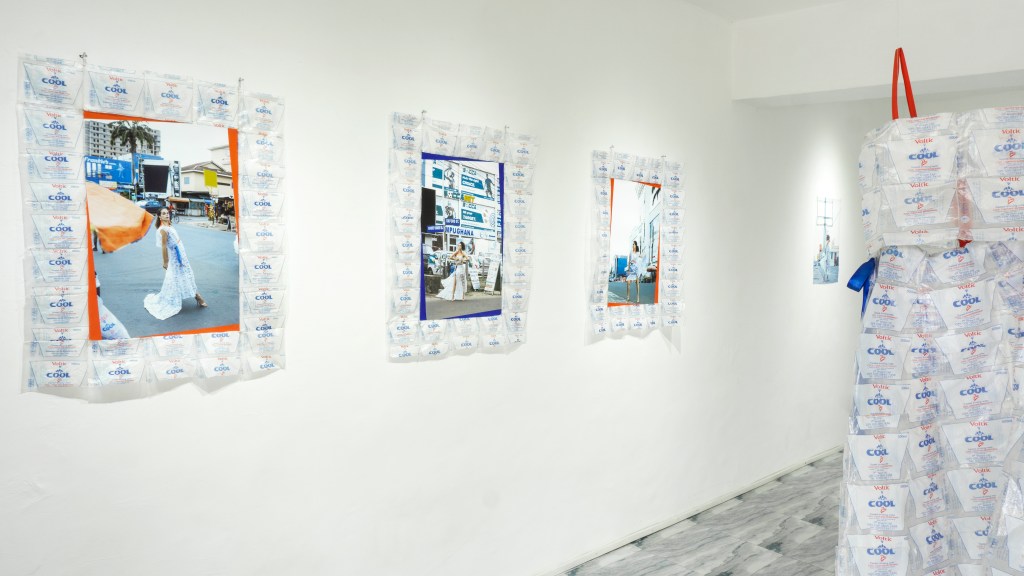The female body and water. Both sources of life. Both squeezed and packed in plastic containers. Sachets on the one hand and on the other: beauty standards, social media impressions, societal expectations, the male gaze. What is the residue of the source of life? What is left behind when water is consumed? Plastic bags tossed on the street, in the gutters, at the beach, in the sea. Useless, lifeless, a burden really, suffocating nature and sustainability. And what remains when the female body relinquishes prescribed social concepts and transgresses boundaries, like water?