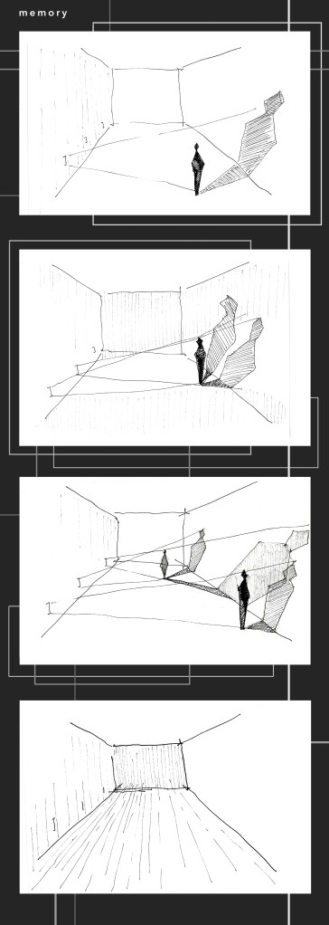 After analysing the main directions of the Trilogy, I tried to associate material attributes to the themes that Beckett handles. How would the un-enoughness of vision, of speech and of memory obtain a spatial presence? How would someone confront this residue by inhabiting the space?