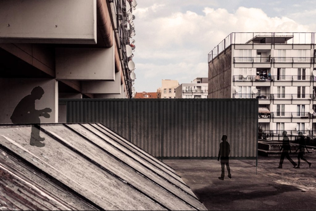 The metal box moves within the city. It can be placed in various institutions and public buildings in order to produce some dialogue from within. In the frame of the presentation I examined three case studies. The Athens Conservatoire and the Gennadius Library in Athens and the Pallasseum social housing in Berlin.